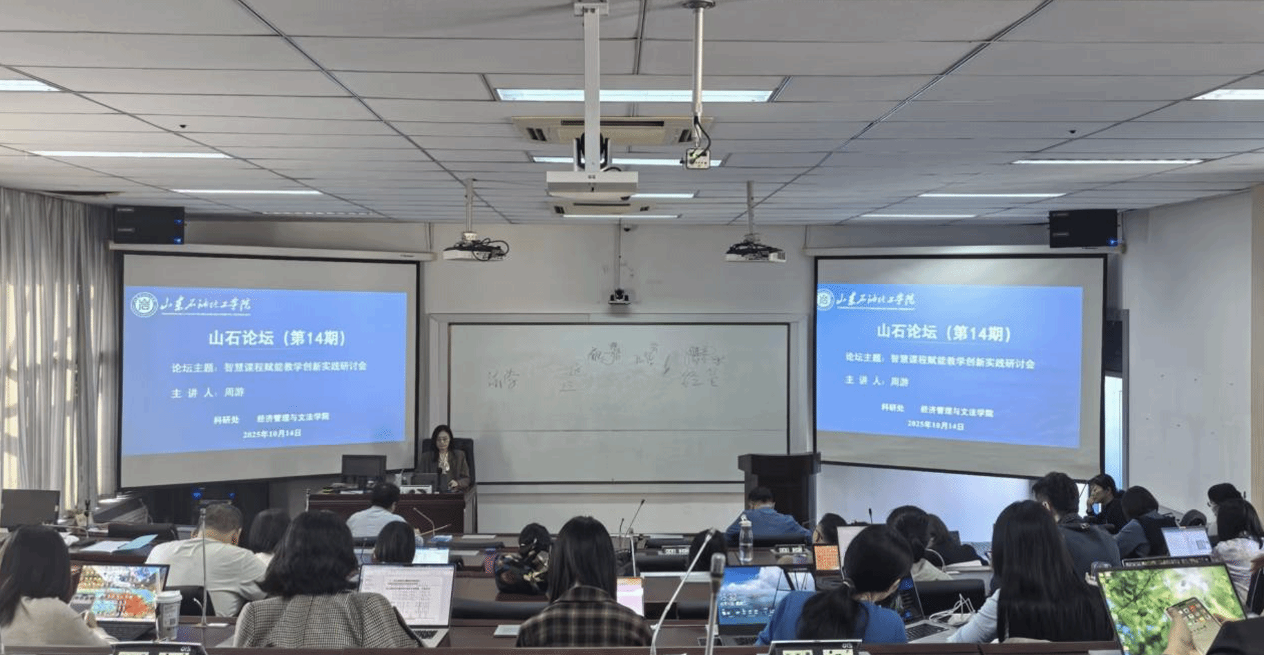 为深化教育教学数字化转型,推进智慧课程建设,我院10月14日特邀智慧树网山东区域课程总监周游担任主讲嘉宾,举办“山石论坛”——智慧课程赋能教学创新实践研讨会。会议由副院长张朋程主持,全体教职工参加。