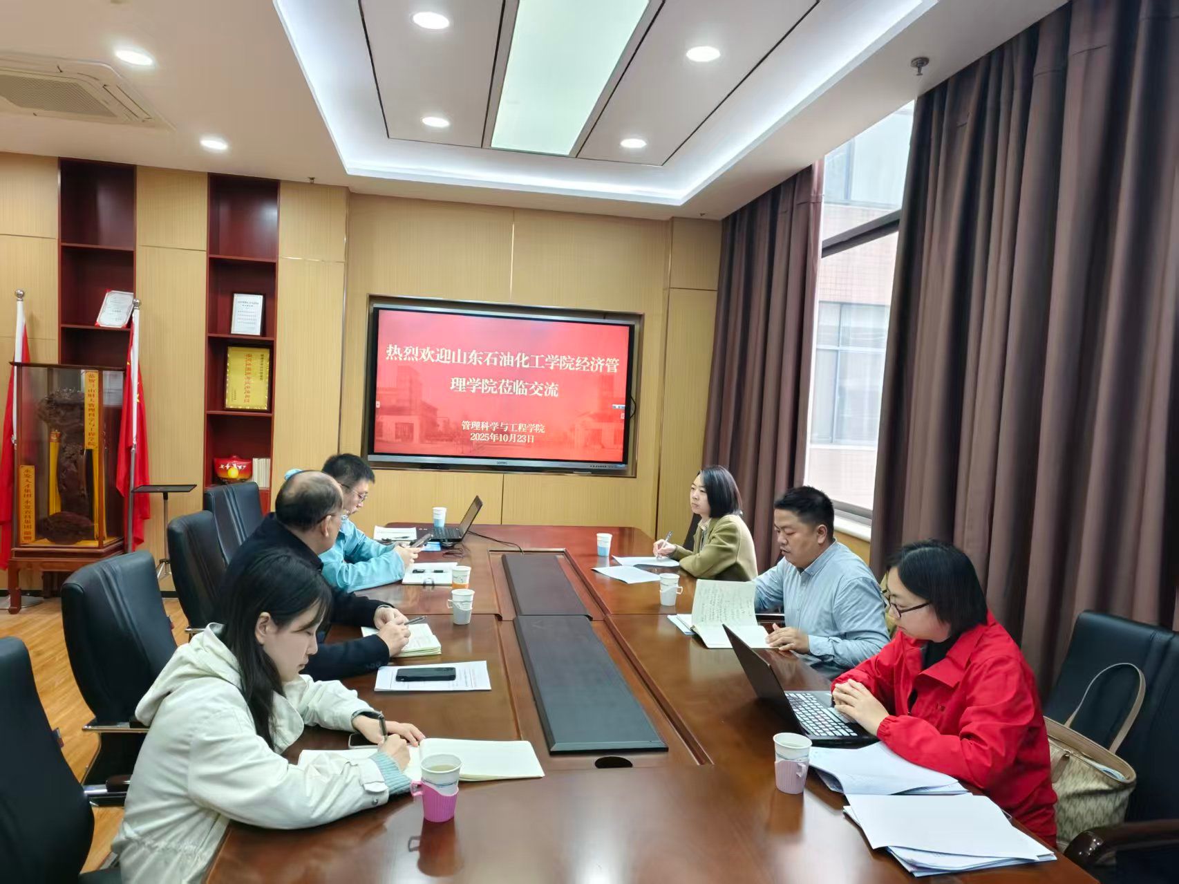 调研团队随后赴山东财经大学管理科学与工程学院,聚焦大数据管理与应用专业建设及实验室建设开展调研。座谈会上,山东财经大学管理科学与工程学院副院长马建华介绍了学院发展定位,大数据管理与应用专业系主任杨成伟详细介绍了大数据管理与应用专业的人才培养定位、课程设置和毕业生就业情况,双方就如何结合学校特色开展专业申报与建设、教学创新方法及学生应用能力培养等展开探讨。