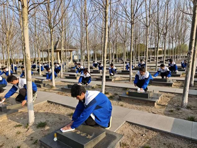 祭扫仪式结束后,党员同志带头示范,入党积极分子、团员青年紧随其后。他们手持抹布、捧着鲜花,细致擦拭每一块烈士墓碑,清除碑身灰尘,再将鲜花轻轻摆放于碑前,以质朴的行动传递对英烈的缅怀之情。紧接着,全体人员面向纪念碑庄严宣誓,铿锵有力的誓词响彻现场。党员同志坚守初心、勇担使命,团员青年坚定信念、紧跟党走,共同立下传承红色基因、勇担时代使命、续写时代华章的青春誓言,彰显了党团同心、同向同行的强大合力。