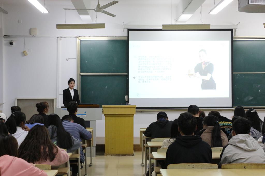 本次讲座培训内容主要包括社交礼仪、餐桌礼仪、仪表仪态礼仪等部分,还增设有奖提问环节,活跃了现场气氛,促进了同学们对礼仪内容的学习和理解。