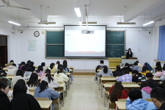 毛从蓉以“妇女节专题”为内容进行宣讲,对妇女代孕、拐卖、家暴等问题进行了详细解说,并在宣讲过程中与同学们进行了互动。