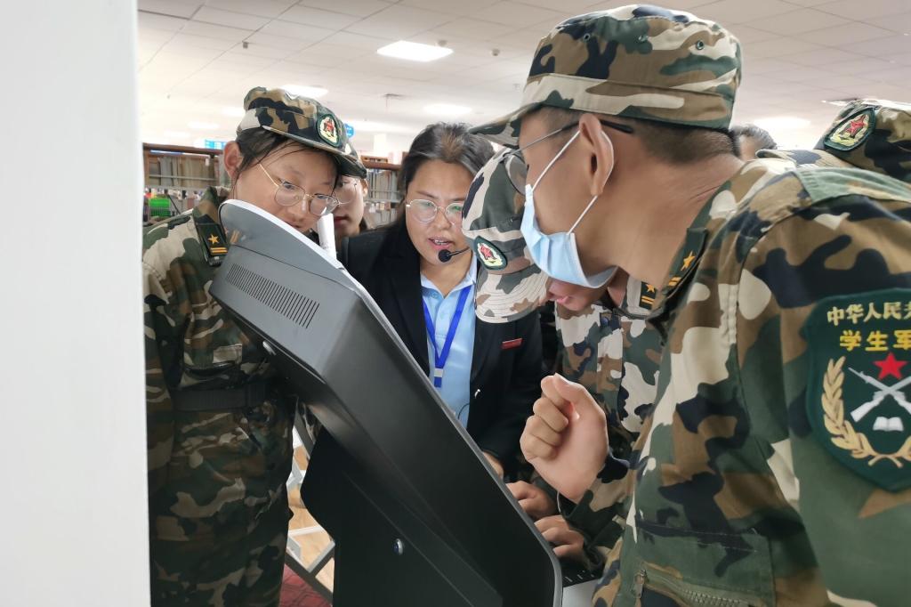 参观中,新生们时时被卷卷书籍吸引而停下脚步,对馆内科技感满满的学习设施充满兴趣。