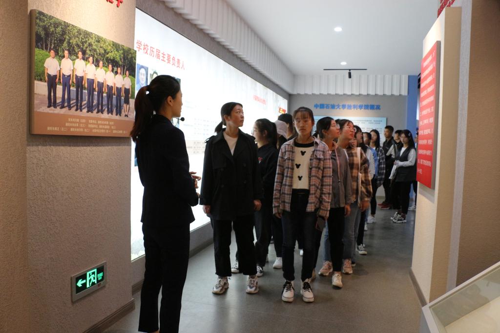 校史馆讲解员结合展板内容和馆内陈列物品向新生介绍了我校的办学历程、发展成就、校友风采、领导关怀和展望未来等相关内容,使同学们深切地感受了学校厚重的历史积淀、丰硕的办学成果和奋发的进取精神。