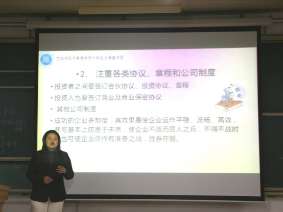 为进一步扩大我院普法宣传力度,促进同学们的思想道德建设,4月13日,大学生法律宣讲团成员朱明月、毛从蓉、张宇、殷国莉在师专校区第一教学楼为教育与艺术学院的同学们带来了一场精彩的普法宣讲活动。