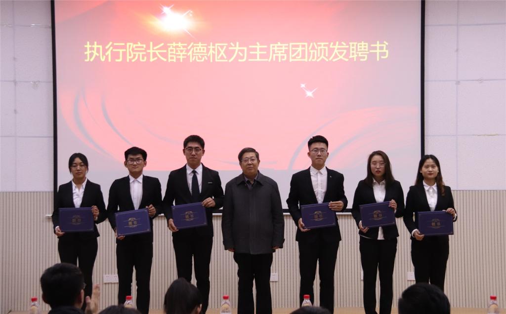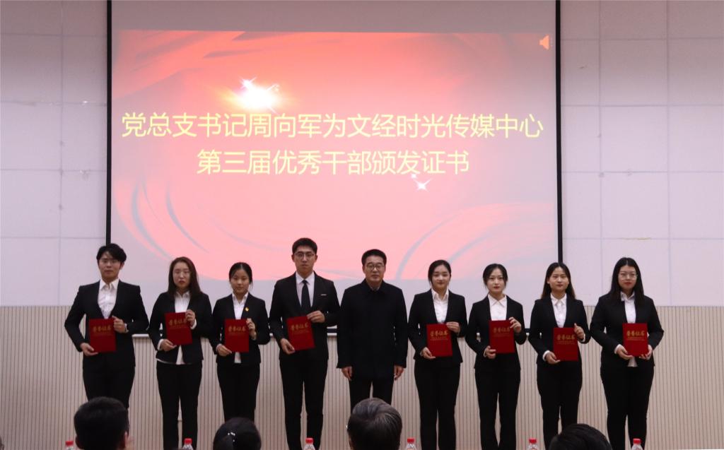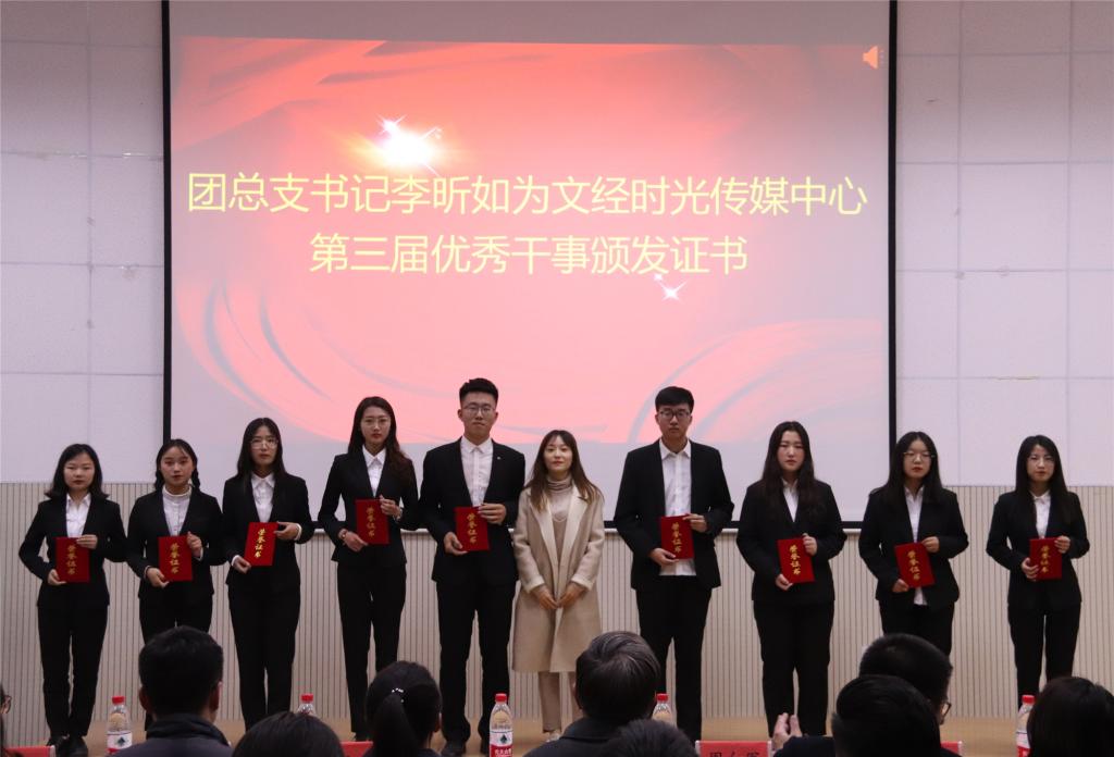 苏晓璐老师宣布关于成立第四届文经时光传媒中心的决定。在热烈的掌声中,薛德枢院长、汤雅君老师分别为主席团和干部团颁发聘书。新一届文经时光传媒中心将揭开新的篇章。