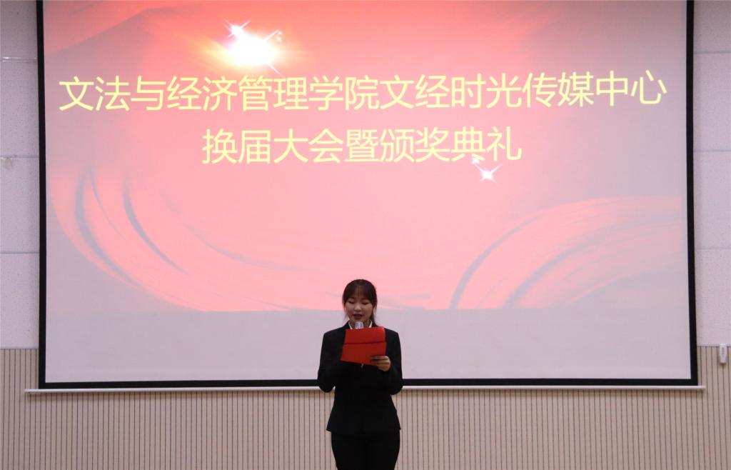 11月14日下午,我院在师专校区南电教举行文经时光传媒中心换届大会暨颁奖典礼。校组织宣传处汤雅君老师,我院执行院长薛德枢、党总支书记周向军、综合办公室主任黄昊、学工办主任苏晓璐、团总支书记李昕如、文经时光传媒中心指导老师杨凯丽以及各位辅导员老师和各学院传媒代表参加了此次大会。戚雨雪同学主持会议。