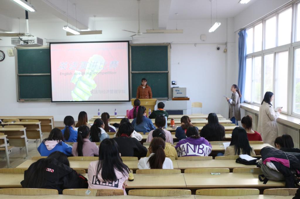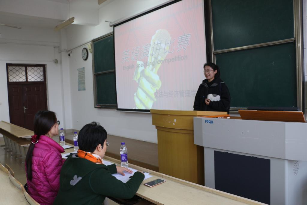 为激发同学们英语学习的兴趣和热情,发掘具有英语特长的学生,4月21日下午,由我院学生会学习部主办的英语演讲比赛(初赛)在师专校区新教210教室举行。基础科学学院英语专任教师王瑞、胡冬霞两位老师莅临活动现场担任评委,徐秋双同学主持比赛。