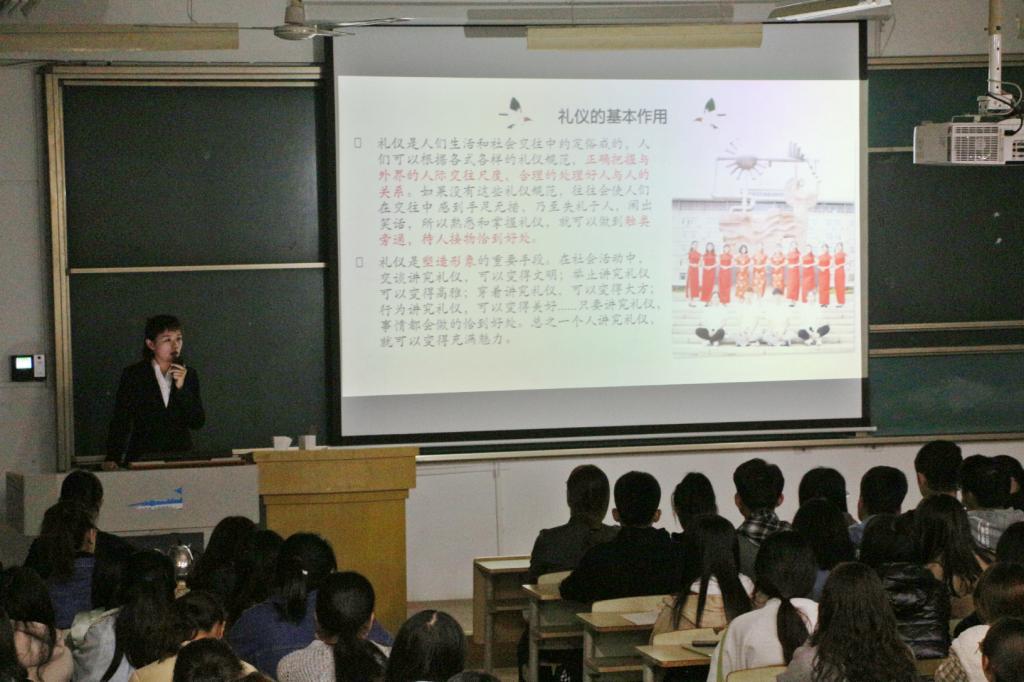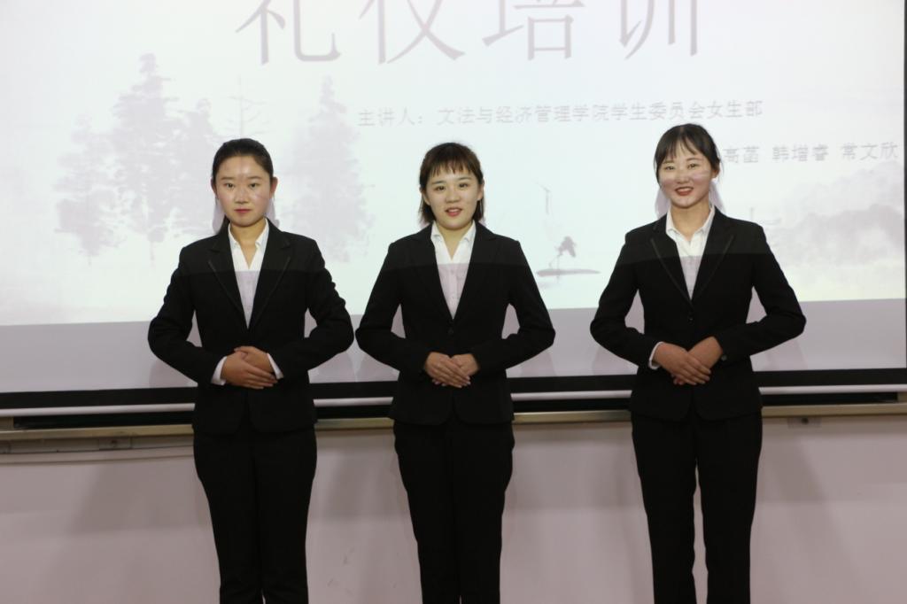 为弘扬中华优秀礼仪文化,使同学们增进对礼仪知识的了解,11月4日,我院学生会女生部邀请时晓馨老师在师专校区第一教学楼开展礼仪培训讲座。我院学生会各部门部长、副部长及2019级新干事参加了此次培训会。