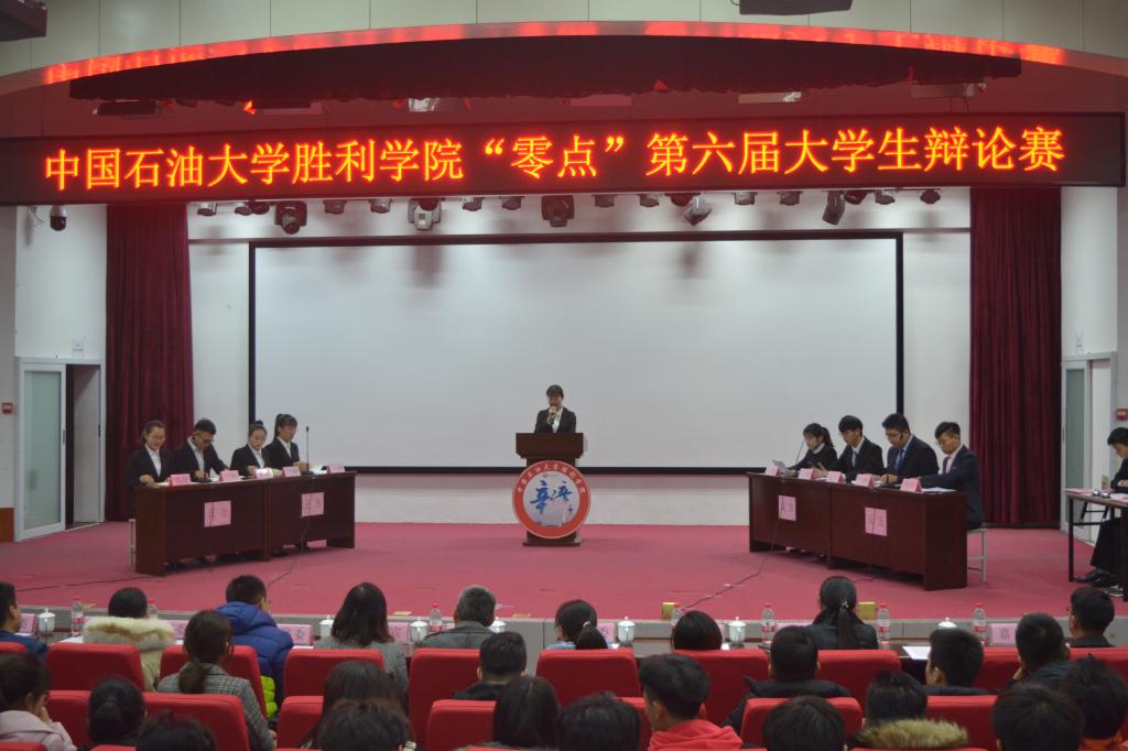 12月5日晚,由我校学生工作处主办、校学生委员会承办的“零点杯”第六届大学生辩论赛决赛于石大校区100号学术报告厅举行,我院代表队最终获得辩论赛冠军。