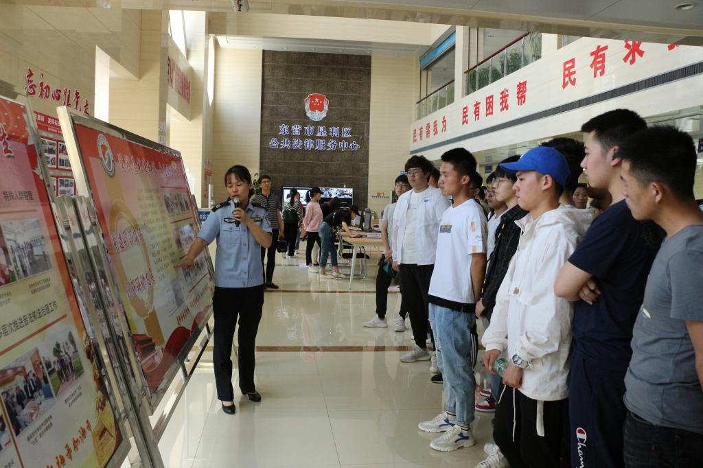 为贯彻落实法学专业人才培养方案,巩固同学们的专业理论知识,5月20日下午,我院2017级法学专业学生在指导老师的带领下前往垦利区司法局、新航基地开展专业见习活动。