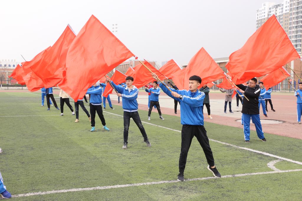 在院领导的大力支持和舞蹈老师精心指导下,同学们积极主动,情绪高昂,以最佳的状态投入训练中。女生们不时变换着队形,力争把每一个动作做到标准、漂亮。男生们也不甘示弱,每一次舞旗都使出浑身解数,力求完美。在操场上,伴随着音乐节奏,同学们充分发挥不怕苦不怕累的精神,坚持训练,互相帮助,团结向上。