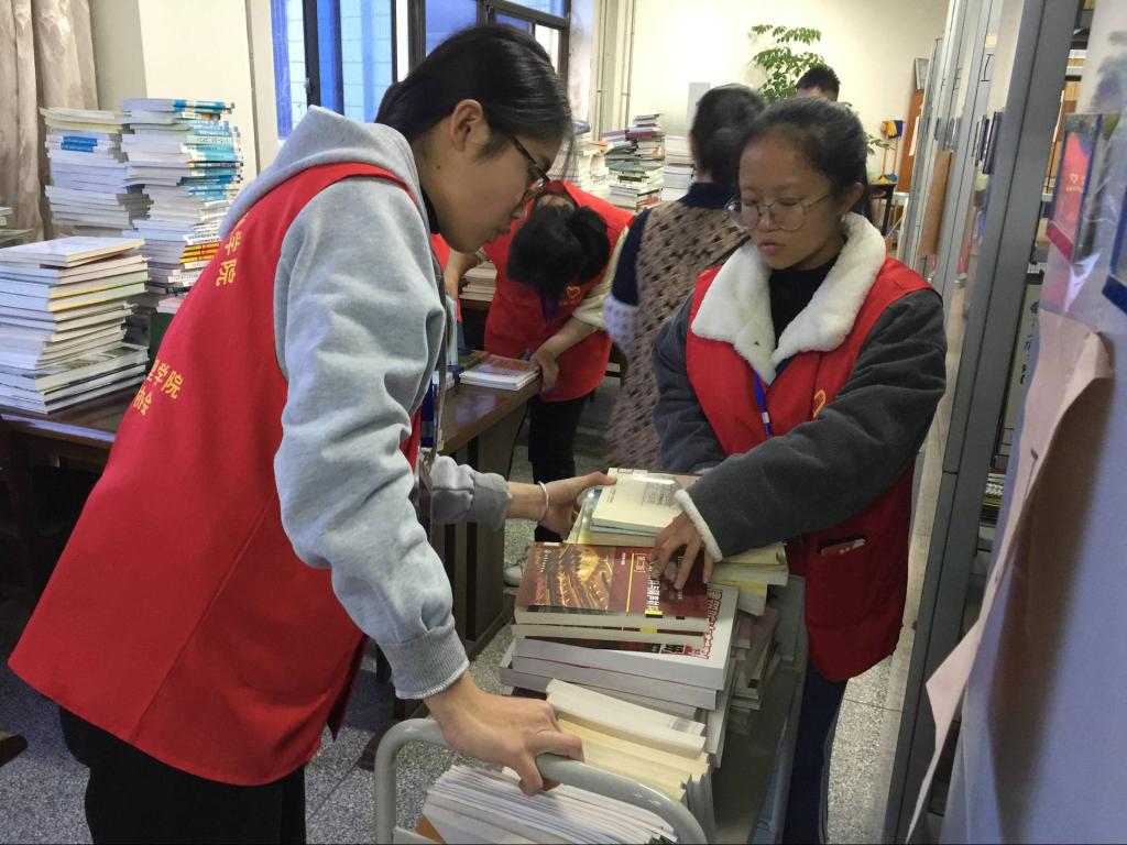 11月20日下午,我院青年志愿者协会的部分志愿者在师专校区图书馆开展书籍分类整理的志愿服务活动。