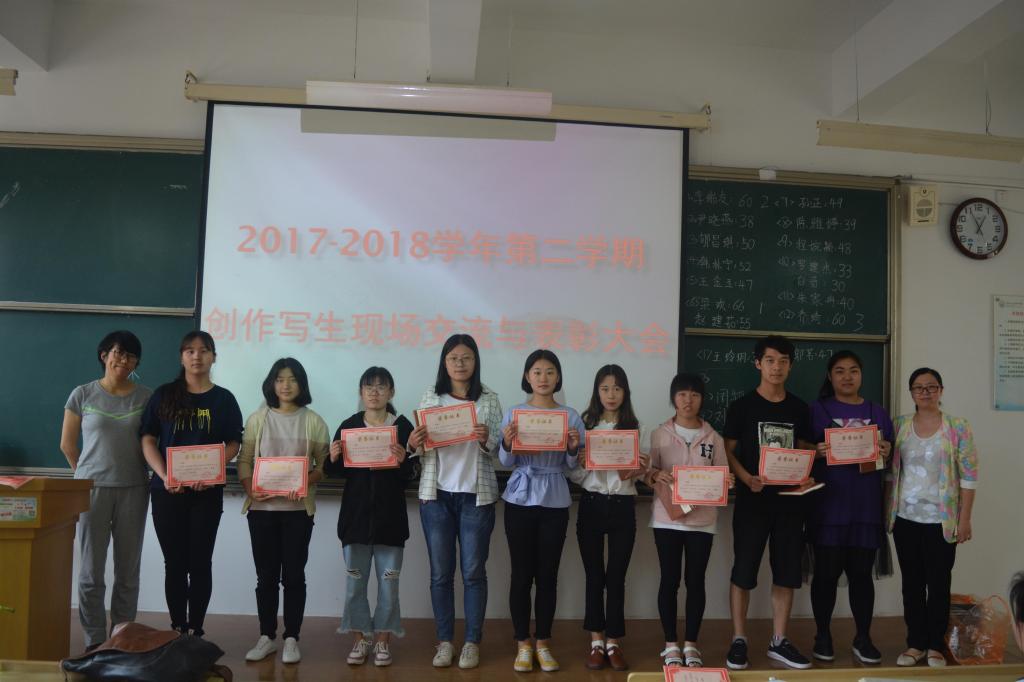 5月18日,我院中文系创作写生交流会在师专校区新教106、108两个教室举行。现场交流会中,同学们经过讨论推选出36篇优秀的文学创作作品,刘娟老师和王艳老师进行一一点评。最终,师生共同评选出一等奖6名,二等奖10名,3等奖20名。所有的获奖作品将会在新教一楼大厅展览,并推送校报和《孤岛文苑》投稿。