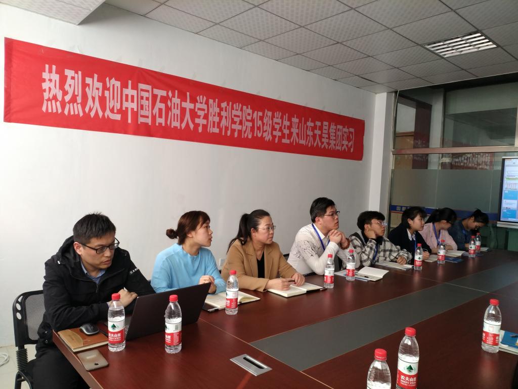 下午2:00时,在山东天昊集团本部会议室召开2018届会计专业毕业生实习欢迎会。集团董事长姚海新、集团副总经理李翔健、各部门负责人、经济管理系主任李大容、实习指导老师王蔚雯及10名会计专业应届毕业生出席本次会议。