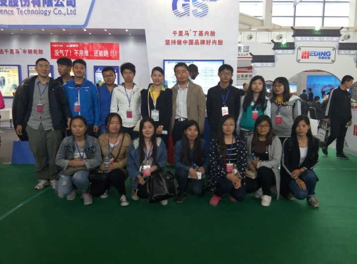 观展过程中,同学们见识到了不怕刺扎的防爆胎,会拖尾的彩烟轮胎,三米多高、价值20多万的工程轮胎,这些都是正在举办的中国(广饶)橡胶轮胎展会上的各种新产品;观展过程中,同学们见识到了真正的国际化展会——665家参展企业、120余家境外企业、1500余名境外采购商,涵盖俄罗斯、韩国、马来西亚、乌克兰、英国、巴西、印度、台湾等100多个国家和地区;观展过程中,同学们见识到了米其林、佳通、固特异、马牌、耐克森等40余家世界轮胎75强企业的风范;观展过程中,同学们还见识到了真正的“互联网+轮胎”——展会专设轮胎电商精品展区,国内首家C2B分享型模式典型代表“胎智汇”携40余家企业展示网上产品并组织体验和签约活动,国内轮胎电子商务第一平台“胎大王”组织轮胎产业资本升级高峰论坛推动轮胎产业全面升级。