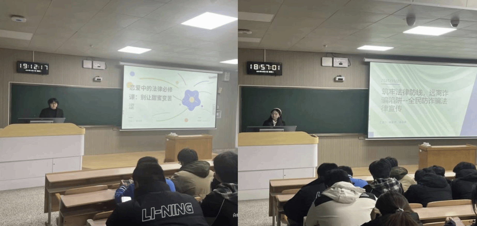 现如今大学校园的恋爱场景日益多元,但甜言蜜语背后的诈骗陷阱与法律纠纷也随之增多。2025年10月21日,我院大学生法律宣讲团在3103为信息科学与工程学院,4103为化学工程学院进行宣讲,开展以“防诈骗和恋爱关系中情侣可能遇到的法律纠纷”为主题的宣讲活动。